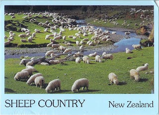 I've only been to New Zealand once, and it was on business, but I don't remember seeing a single sheep. What about all the gorgeous scenery, the outdoor extreme sports, the Maori culture, the geysers? Instead I was sent postcards of sheep.